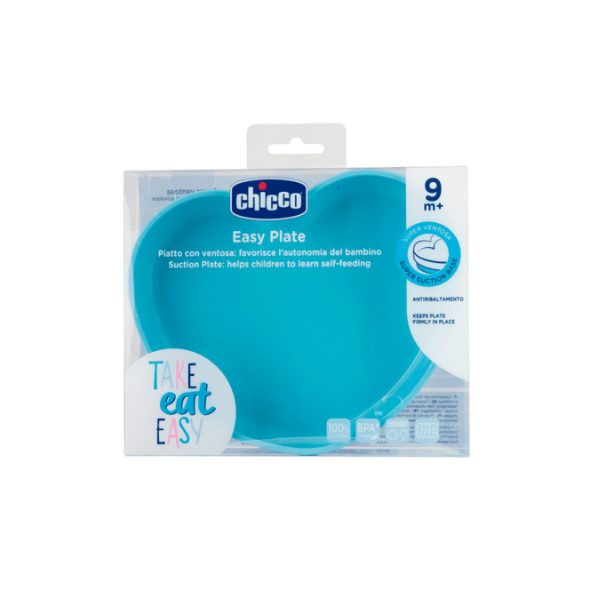 El plato corazón de silicona con base de succión está diseñado para bebés de 9 meses en adelante.